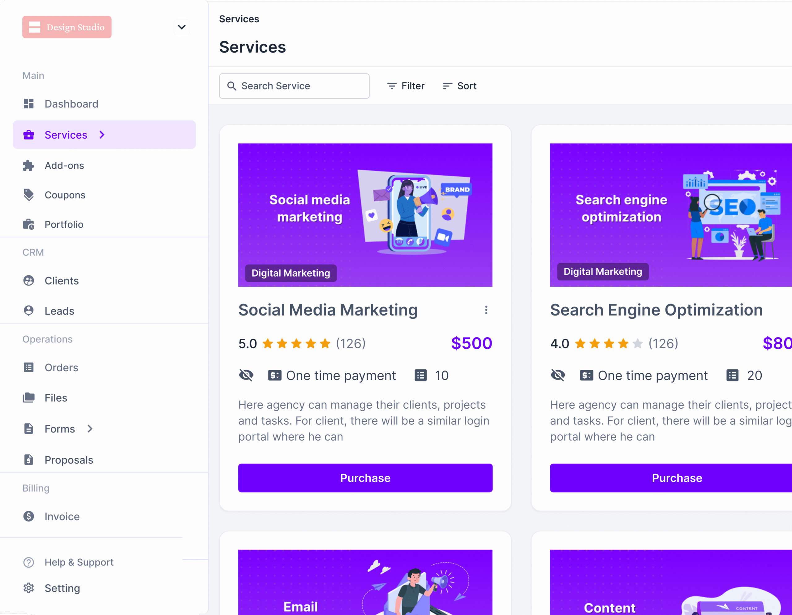 Agency Handy is built for digital agencies, offering advanced service catalog features for flexible client engagement beyond basic listings.