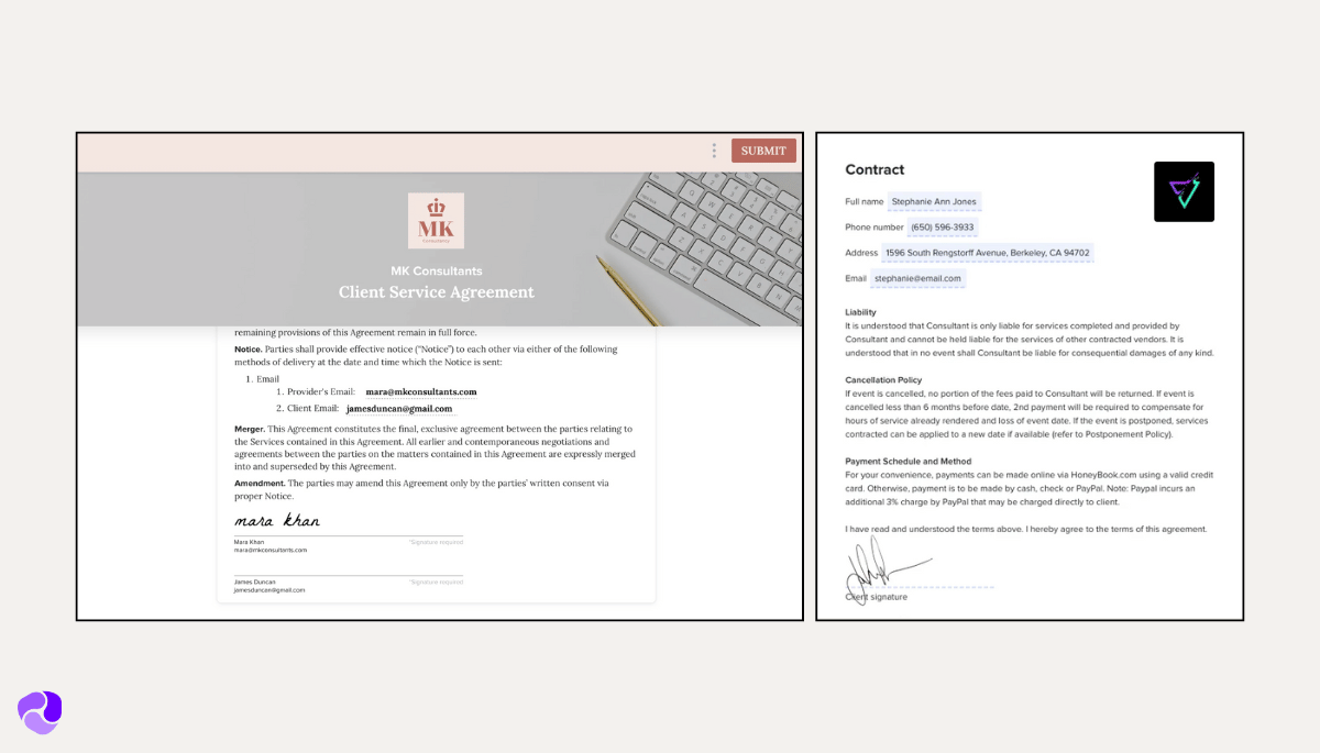 When you start with a new client, HoneyBook lets you make custom forms and proposals. This makes your business look professional. You can also send bills, sign contracts, and get paid online, all in one place.