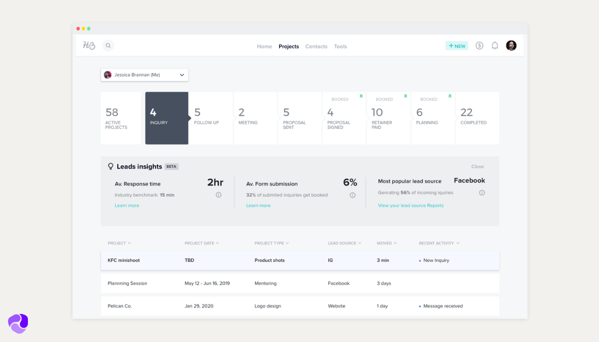 - Keeping projects organized is key. Honeybook offers solid client and project management tools.