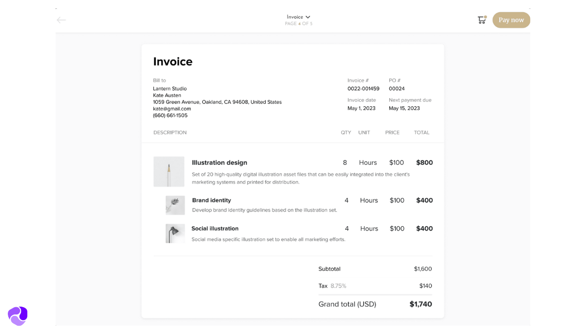 For web designers, Agency Handy helps manage billing throughout the design process. You can send invoices for things like design drafts, changes, and final website handovers. Clients can review and pay invoices directly, making the payment process smooth and fast.