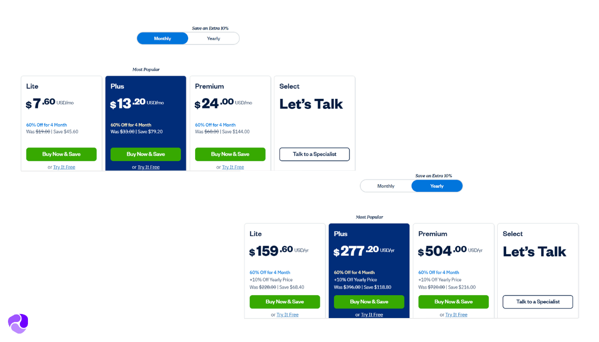 Freelancer – $13/month (billed annually) and $19/month (billed monthly)